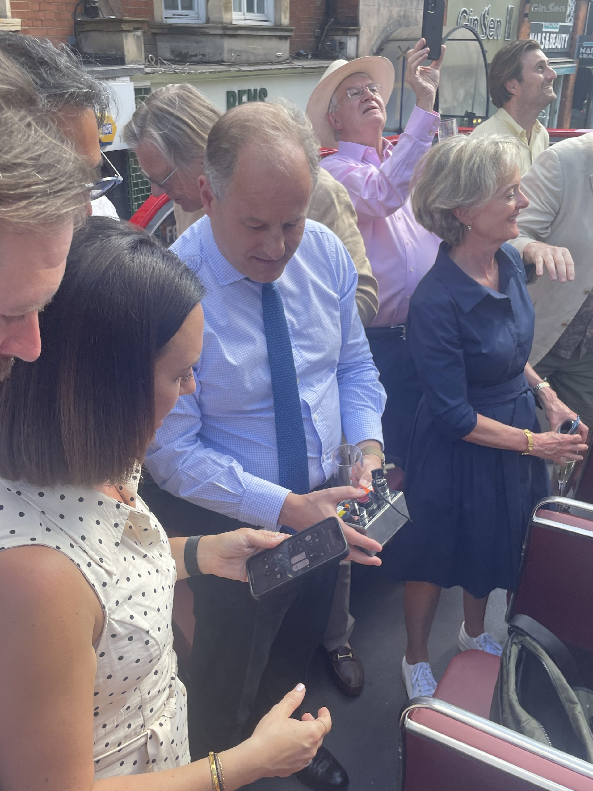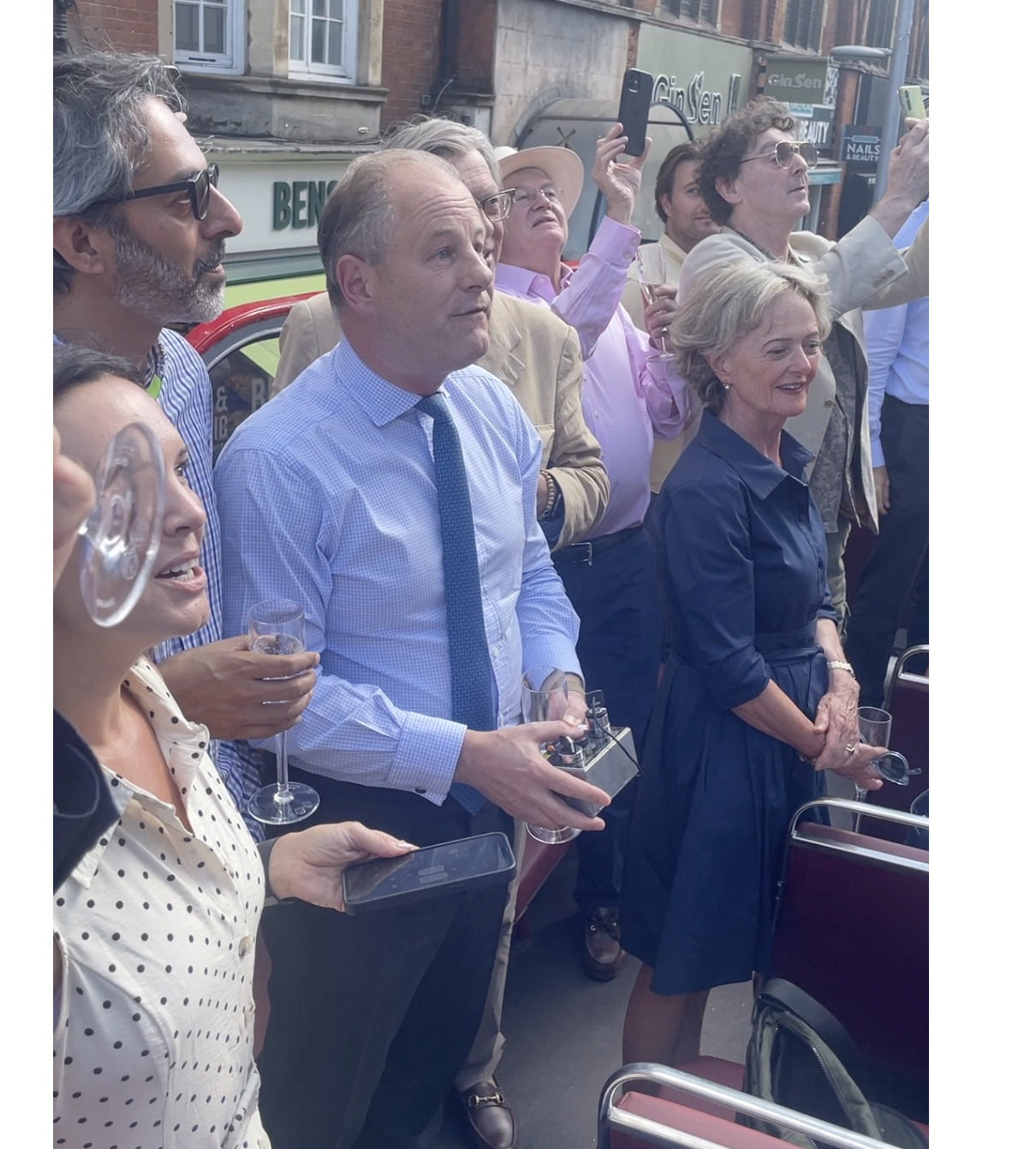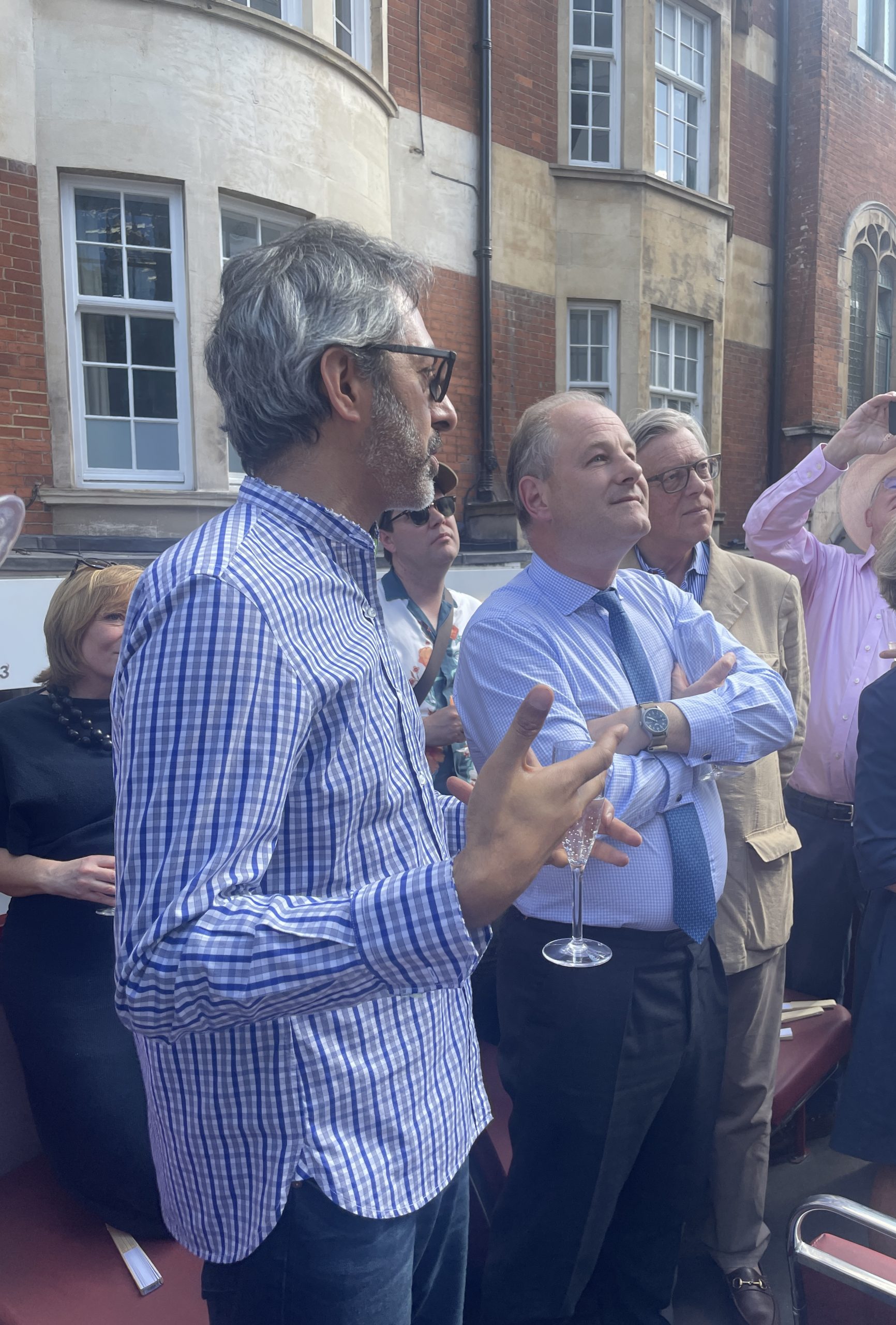 On a scorching, sun-drenched afternoon, the party boarded a vintage open-top Routemaster bus – The Gaumont Special, no less – at Duke of York Square for the short trip to the new building. Among the gathering were Lord Cadogan, CEO Hugh Seaborn, Marketing & Comms dynamo Caroline Jennings and other key members of the Cadogan team. RBKC was fully represented by various members of its Cabinet, including Leader Elizabeth Campbell, Deputy Leader Kim Taylor-Smith, and councillors Cem Kemahli, Emma Will and Josh Rendall. Plus a few lesser council mortals.