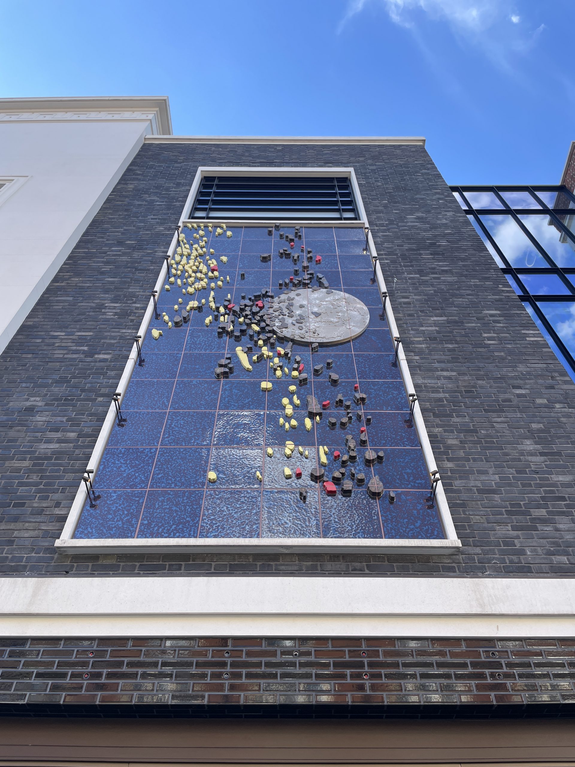 Entitled Cascade, the ceramic abstract diptych fills two 609 x 288 cm panels on either side of the 1930s frontage that was once The Gaumont Palace cinema and theatre and now the focus of a considerable cultural re-generation for Chelsea.