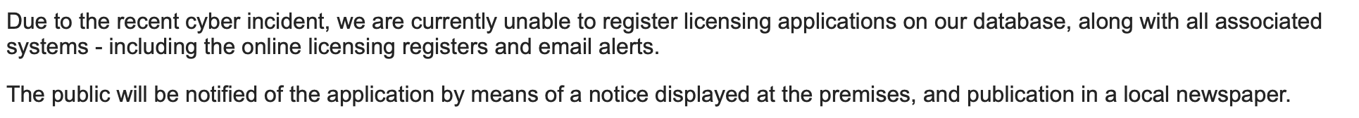 From the letter: ‘It is understood that the Licensing Department has complied with the Statutory Requirement under the Act but an ad in a newspaper that residents do not have access to and one A4 letterhead on a flank wall is perhaps not in the spirit of the law, particularly on what is known to a particularly sensitive location.’