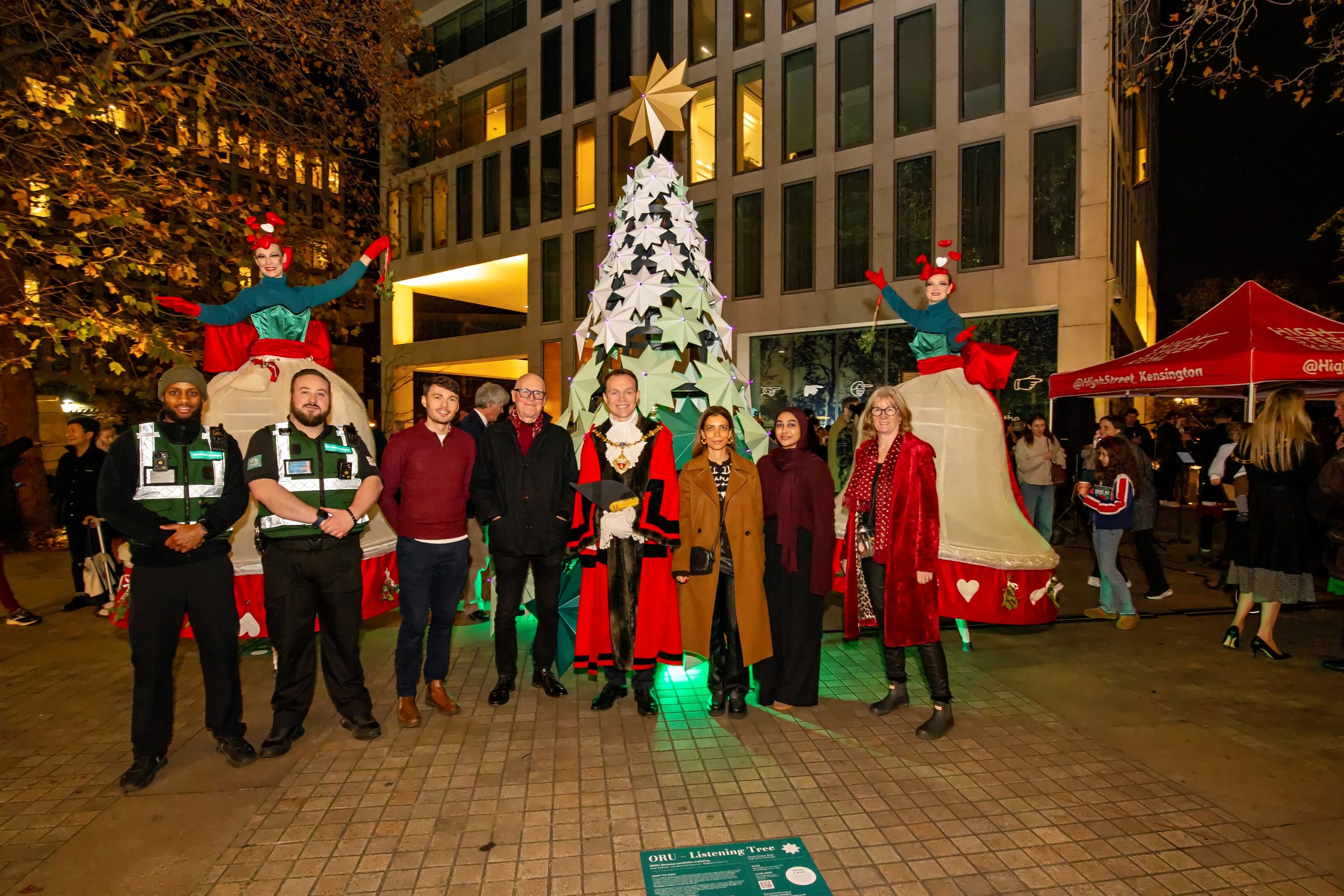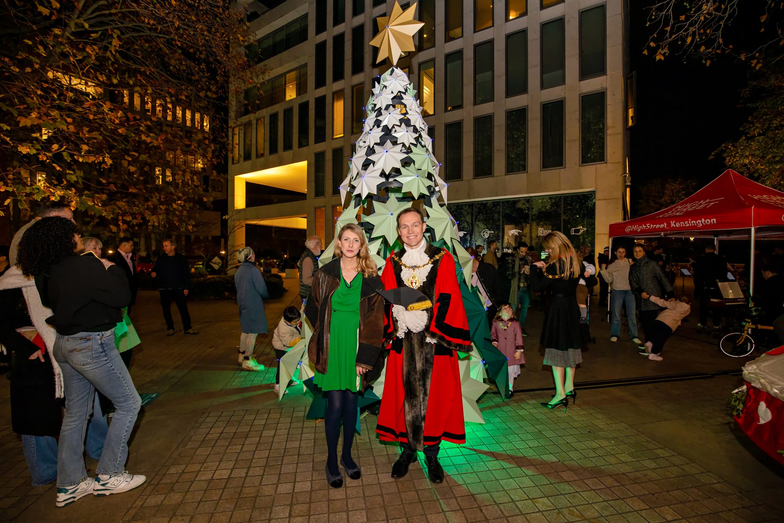 The ceremony at the Design Museum Plaza, in Kensington High Street, marked the official start of the Borough’s festive season, with shop windows already shimmering in gold and silver. Local traders are hoping the Christmas crowds will give sales a much-needed lift after a tough year.