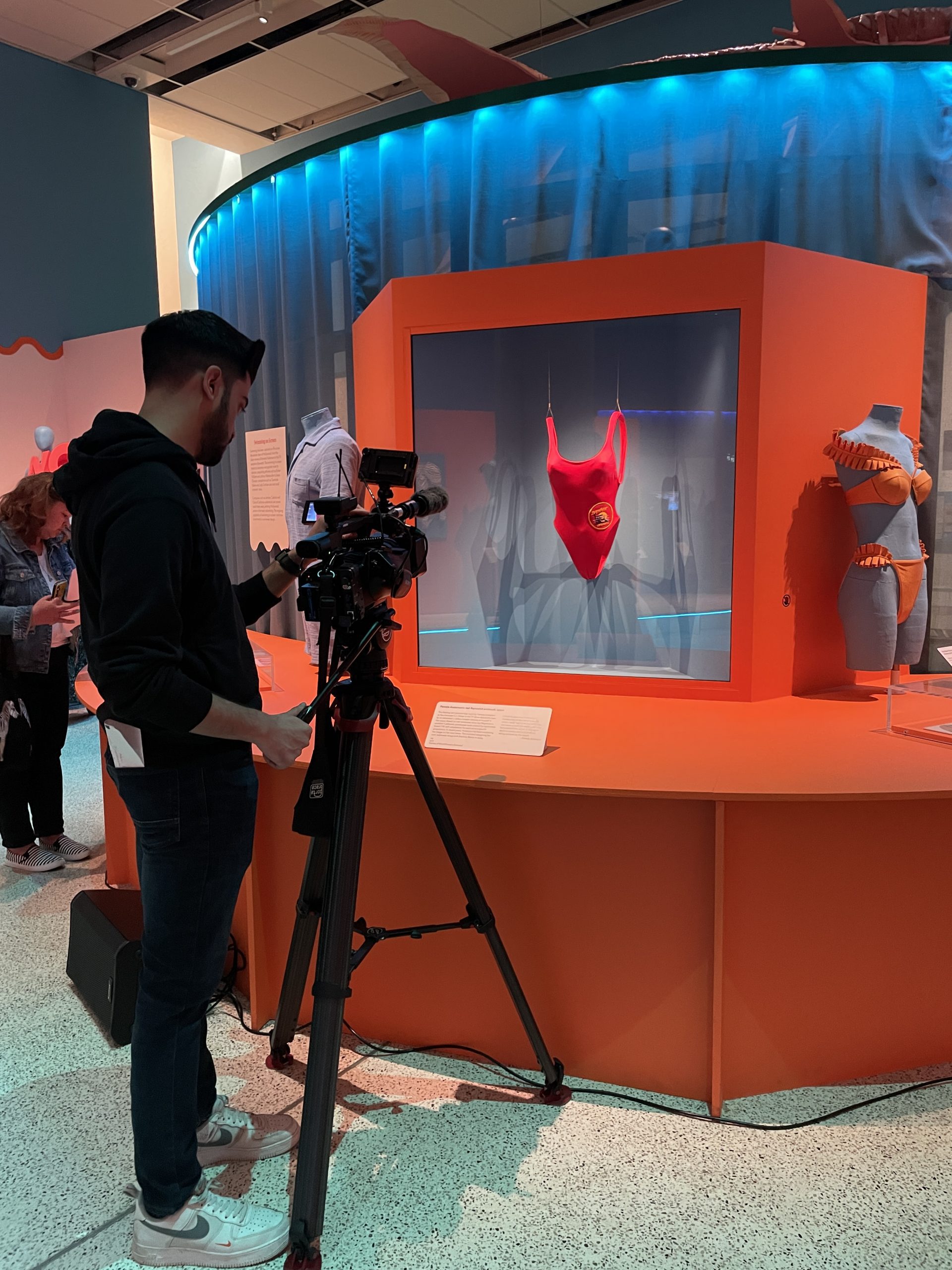 ‘The exhibition’s story begins in the 1920s, when swimwear began to be marketed for swimming rather than the Victorian’s preference for bathing, and when beach holidays exploded in popularity. It explores right up to the present day, and swimming’s role in modern life such as how it influences and subverts our ideas of body autonomy and agency, as well as its link to environmental issues.’