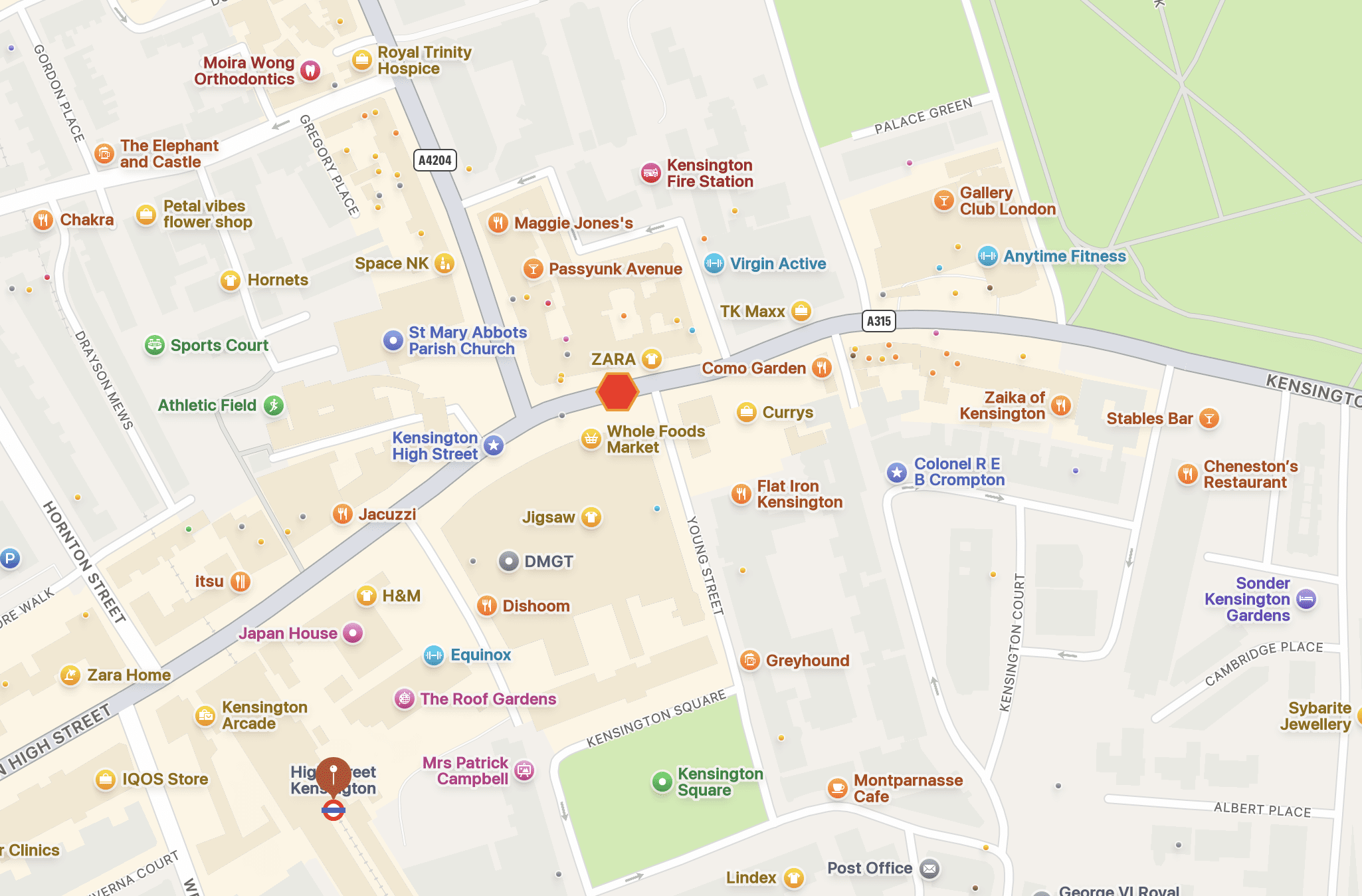 Location of the accident in Kensington W8