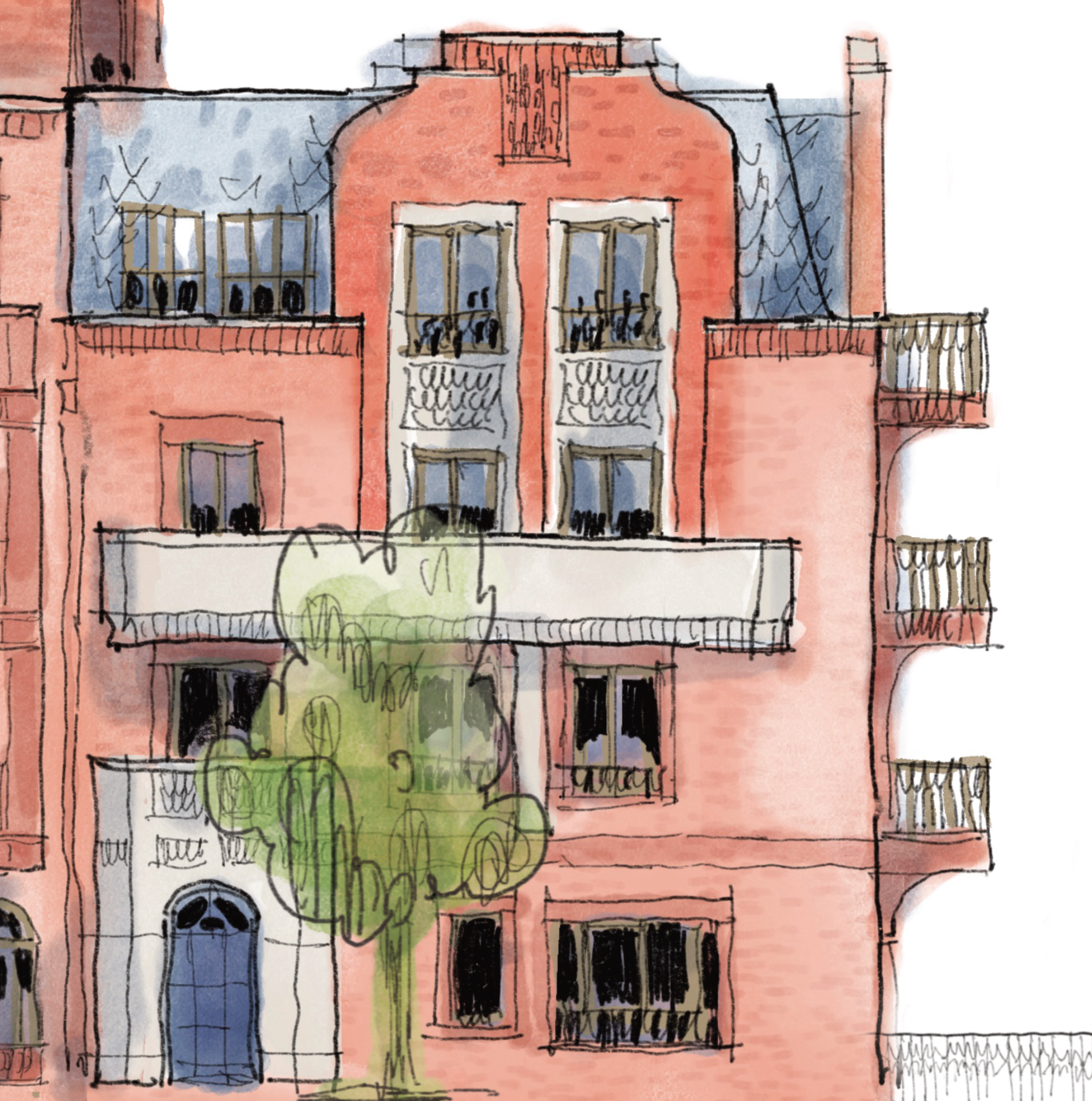 - Detail of the mansion block