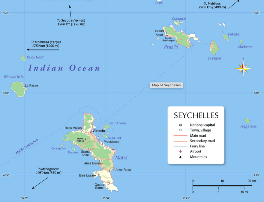 Locals tend to speak three languages: Creole, French and English, reflecting much of the country’s history. The French had control from 1756-1810, before the British took over, administered as a dependency of the already colonised Mauritius.