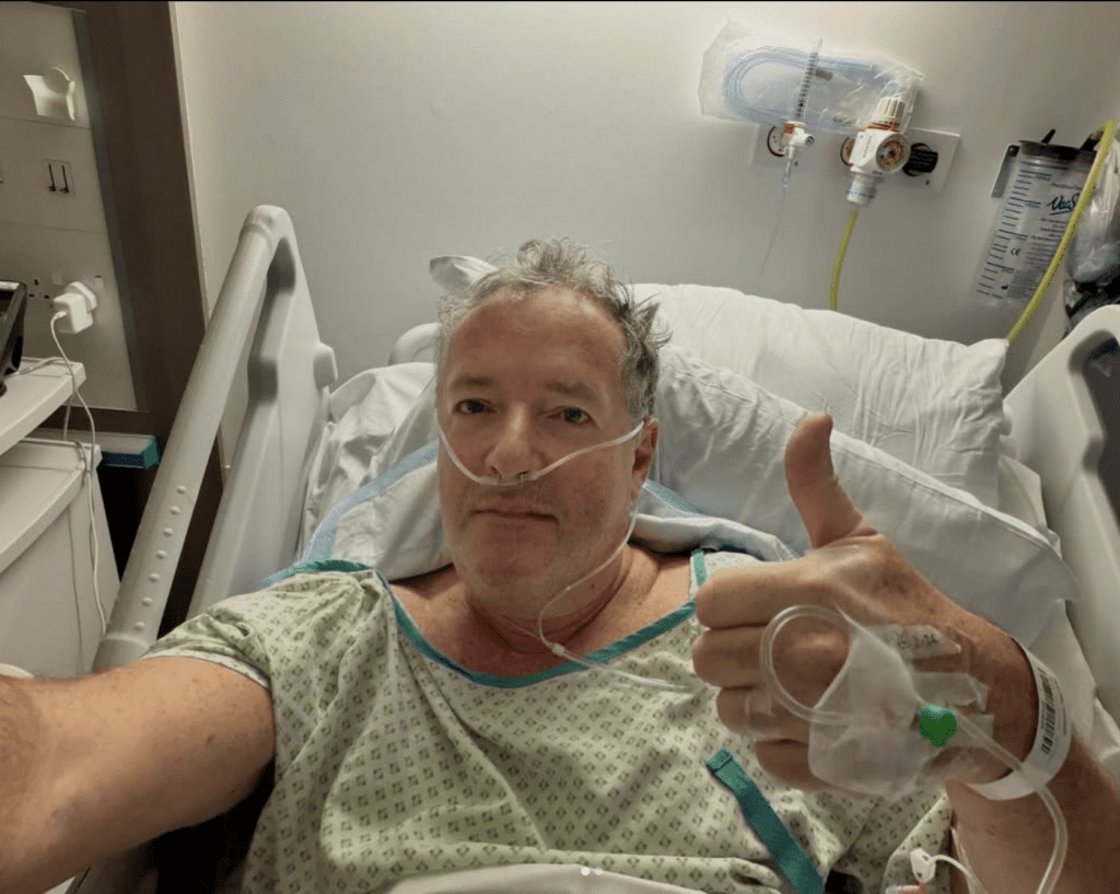 Sister Morphine: Mr Pughe-Morgan stoically settles in to hospital life       ©PiersMorgan/Instagram