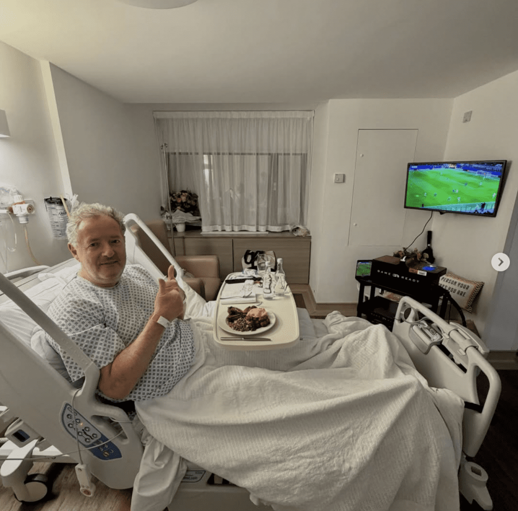 Double Thumbs Up: Mr Pughe-Morgan in his suite with a telly at the Cromwell Hospital            ©PiersMorgan/Instagram